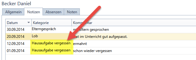 Ein Beispiel: In beiden Datenbanken sei eine Aufgabe angelegt. In dieser Aufgabe haben Sie notiert: „Büchergeld einsammeln“. Auf dem Tablet ändern Sie den Text dieser Aufgabe in „Büchergeld einsammeln und Hausaufgabe kontrollieren“. Anschließend starten Sie auf dem Tablet die Synchronisation. Nun editieren Sie auf dem PC dieselbe Aufgabe, die dort noch den Text „Büchergeld einsammeln“ enthält. Jedoch ändern Sie nun den Text zu „Büchergeld einsammeln (und Hausaufgabe kontrollieren)“. Anschließend starten Sie die Synchronisation. Dann wird nur die letzte Variante des Textes gespeichert. Die erste Variante auf dem Tablet ist verloren. Sobald sie das nächste Mal auf dem Tablet synchronisieren, wird dort also auch der Text „Büchergeld einsammeln (und Hausaufgabe kontrollieren)“ in der genannten Aufgabe erscheinen.